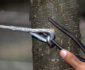 Для фиксации наклоненного дерева и предотвращения его падения, его подтягивают тросами в противоположную от возможного падения сторону и фиксируют. Таким же способом укрепляют деревья, которые имеют слабую способность противостоять напору ветра (т. е. имеют повышенную ветровальность).